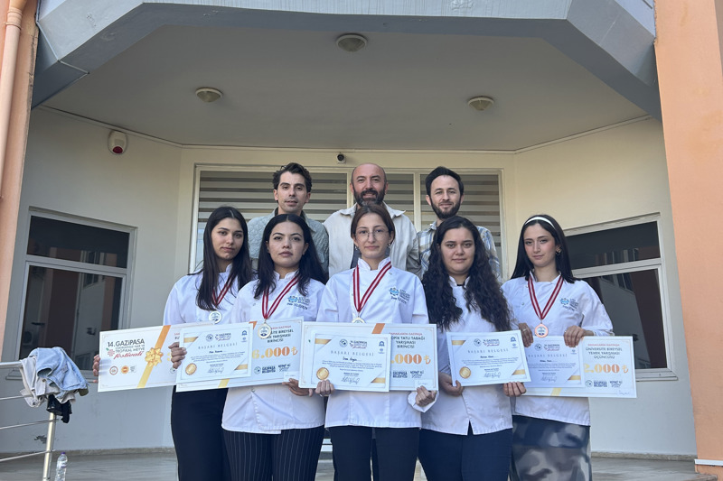 19 Ekim tarihinde gerçekleşen yarışmalara Yüksekokulumuz Otel Lokanta ve İkram Hizmetleri Bölümü, Aşçılık ile Turizm ve Otel İşletmeciliği programı öğrencilerimizden Yağmur Öğ ve Zeynep Sude Katrancı "Damaklarda Gazipaşa Butik" Pastacılık yarışmasında gümüş ve bronz madalya alarak bu kategoride ikinci ve üçüncü olmuştur. Damaklarda Gazipaşa Tropik Kokteyl yarışmasında öğrencilerimiz Eren Küçüktürk ve Berat Himmetoğlu ise altın ve bronz madalya alarak kategoride birinci ve üçüncü olmuştur. Damaklarda Gazipaşa Üniversite Bireysel Yemek yarışmasında ise öğrencilerimiz Filiz Yıldırım altın madalya alarak birinci, Açelya Topaloğlu gümüş madalya alarak ikinci ve Nilay Kurt bronz madalya alarak üçüncü olmuştur. Yarışmada dereceye giren öğrencilerimizi tebrik eder başarılarının devamını dileriz.
