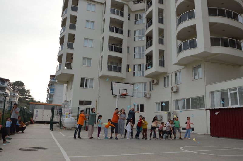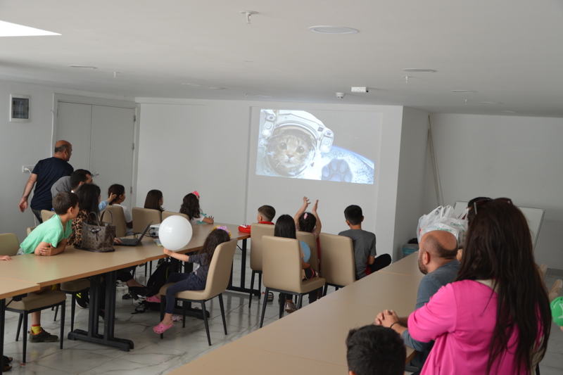Havacılık ve Uzay konulu sunum, çocukların katılımı ile sohbet havasında gerçekleşti. Gezegenler, havalimanları, uçaklar hakkında bilgi sahibi olan çocuklar, yurdun arka bahçesinde yer alan basketbol sahasında ikram ve kağıt uçak yapımı ile eğlenceli anlar yaşadılar.