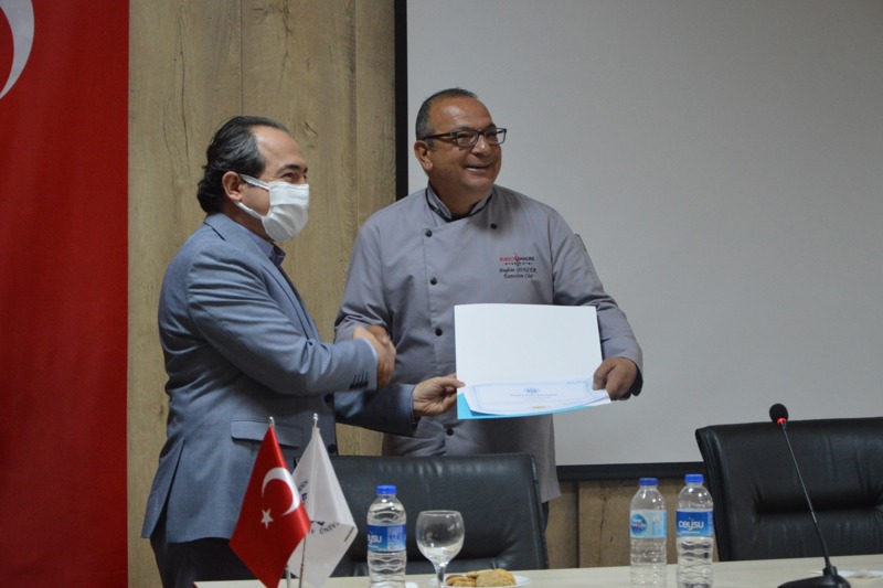 Söyleşi sonrasında Genel Müdür Erdoğan DİRİ ve Executive Chef Bayhan GENÇER ‘e Gazipaşa MRB MYO Müdürü Dr. Öğr. Üyesi Fikret Işık tarafından teşekkür belgeleri takdim edildi.