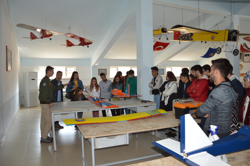 İNÖNÜ THK yerleşkesinde, THK eğitmenlerinden Ufuk AKAR ‘ın THK hakkında genel bir bilgilendirme sunumu yapılmış olup akabinde yerleşke içerisinde yer alan MODEL UÇAK YAPIM VE ONARIM HANGARLARI ‘nın tanıtımı yapıldı. Hangarlarda yer alan benzinli ve akü ile çalışan motorlu model uçakların yanında okullarda da eğitimi verilen ahşap malzemeden yapılan model uçaklar da yer almıştır.